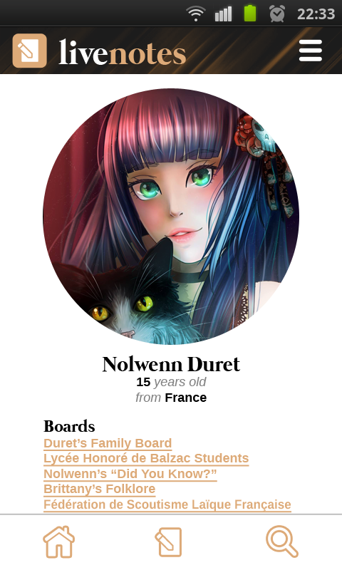 You see, the opening theme is pretty slow, and since I've spent quite a lot of time working on it I was basically wondering how I could get the user to spend as much time as possible on the splash screen (without getting bored of course). At some point I threw on the table the idea of a "did you know?" that would show up at runtime, with fun and interesting facts about France and French (while we were at it). Then, Blueroze suggested it could be some sort of a blog of Nolwenn's (one of our female main characters), and soon it gave birth to an entire concept for a fictitious social media.